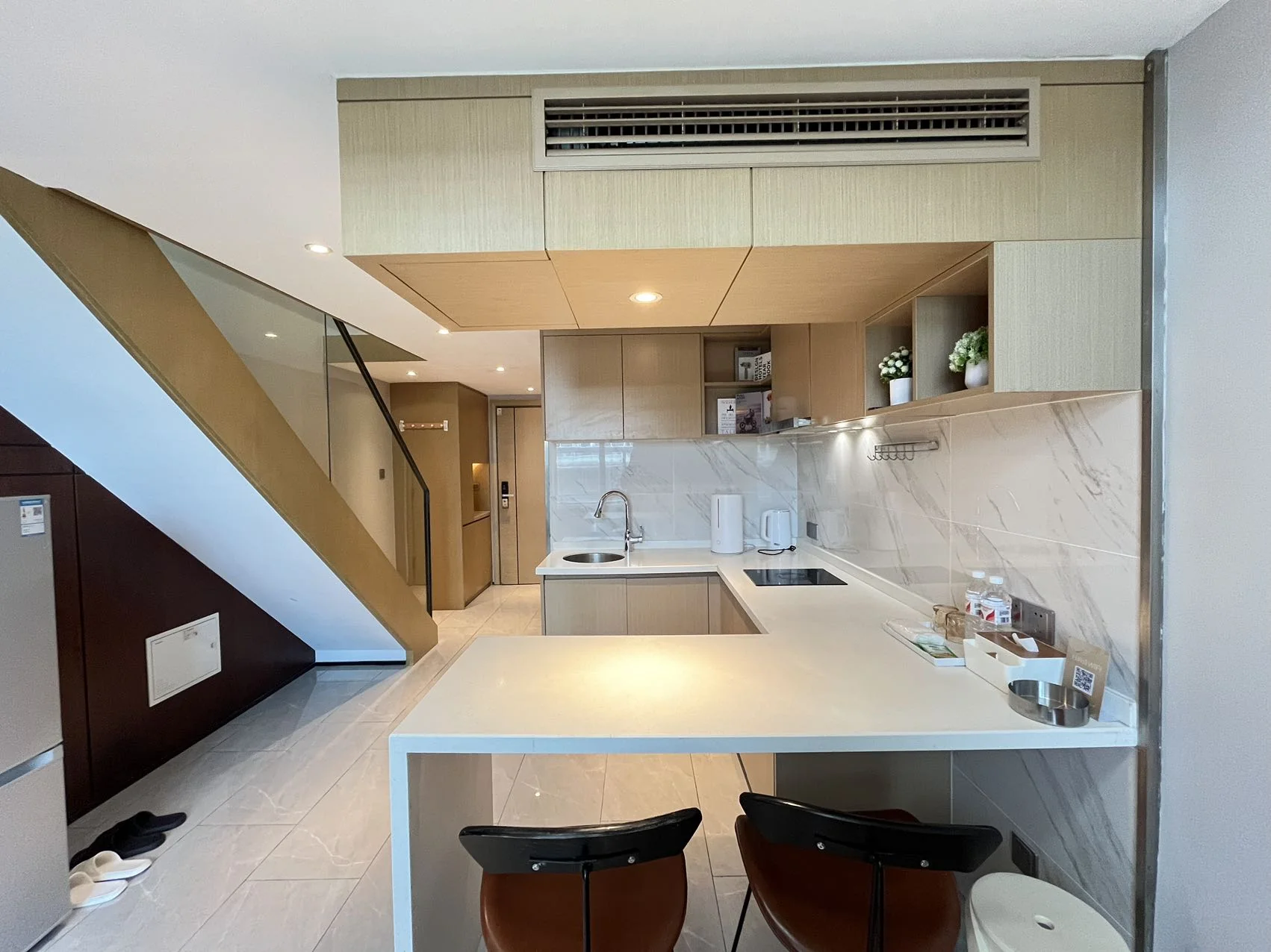 A one-bedroom loft with a balcony near Xingmin Subway Station.